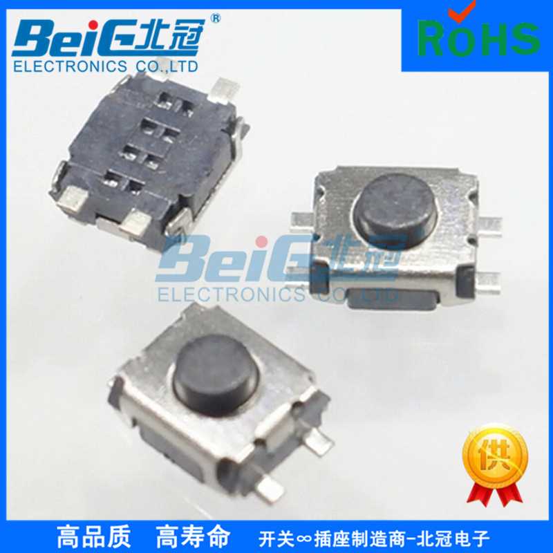 輕觸開關(guān)的結(jié)構(gòu)其主要可分為蓋板、按鈕、彈片、基座、引腳五大部分,其中,按鈕指的是外力施加處;彈片是輕觸開關(guān)的關(guān)鍵組件,開關(guān)的通斷就是靠彈片受力變化引起的;引腳指的是輕觸開關(guān)與電路的聯(lián)接處,一般為五個(gè)引腳,兩兩一組,還有一個(gè)引腳用于接地作用,當(dāng)開關(guān)被正確受力時(shí),四個(gè)引腳相導(dǎo)通使得電路導(dǎo)通,而開關(guān)沒有正確外力對其施壓時(shí),四個(gè)引腳兩兩一組并不相通,使得電路處于斷開狀態(tài)
