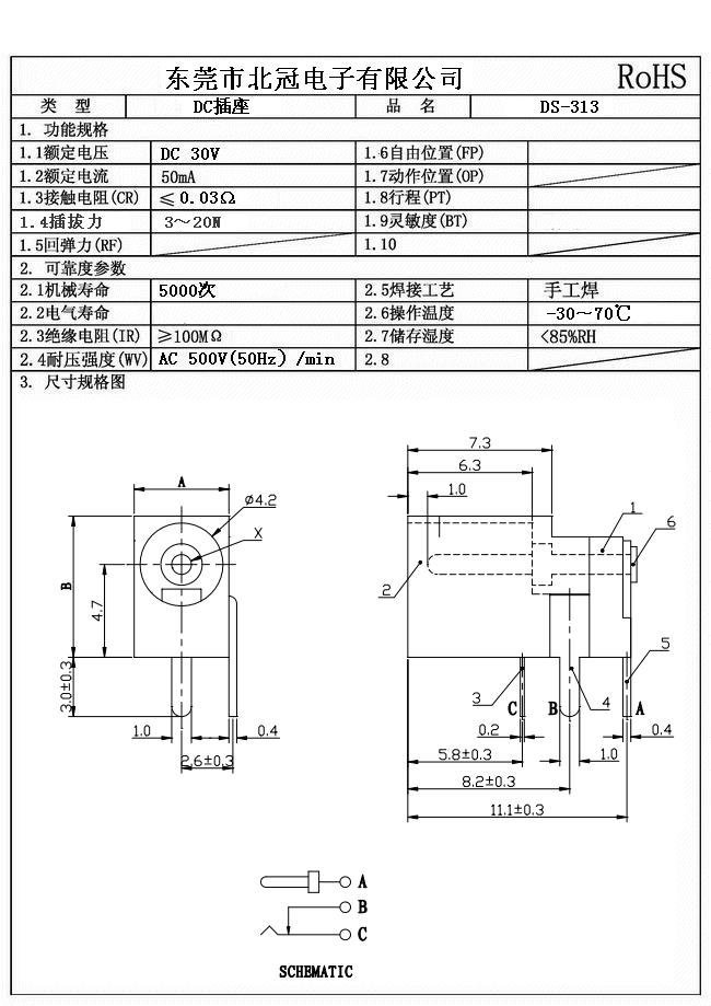 Typical Specifications 1. Rating : DC 30V 0.5A 2. Contact Resistance : 70?Max 3.Lnsulation Resistance: DC500V 1Minute 4.Operating Temperature Range: -25℃+80℃ 5.Ambient Humidity Used: ≤85%RH 6. Operating Force : 3-20N 7. Operating Life : 5,000Cycles