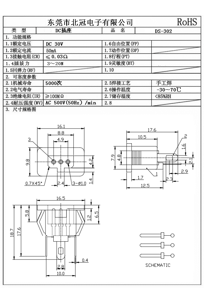 Typical Specifications 1. Rating : DC 30V 0.5A 2. Contact Resistance : 70?Max 3.Lnsulation Resistance: DC500V 1Minute 4.Operating Temperature Range: -25℃+80℃ 5.Ambient Humidity Used: ≤85%RH 6. Operating Force : 3-20N 7. Operating Life : 5,000Cycles