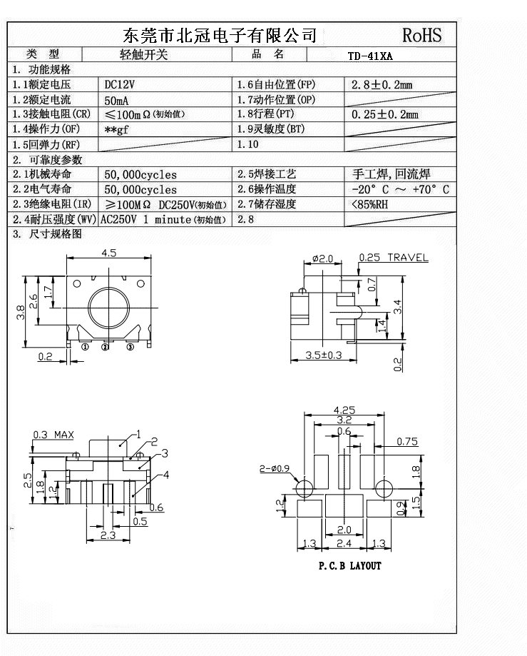 產(chǎn)品名稱(chēng):TD-41XA輕觸開(kāi)關(guān)