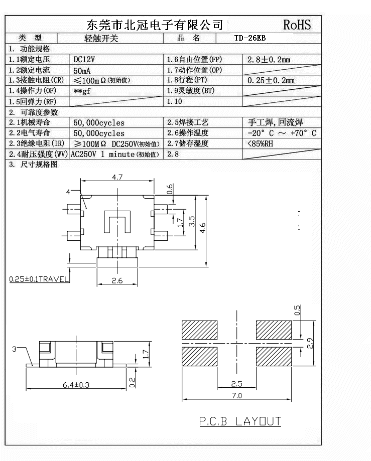 7.Travel:0.25±0.1mm