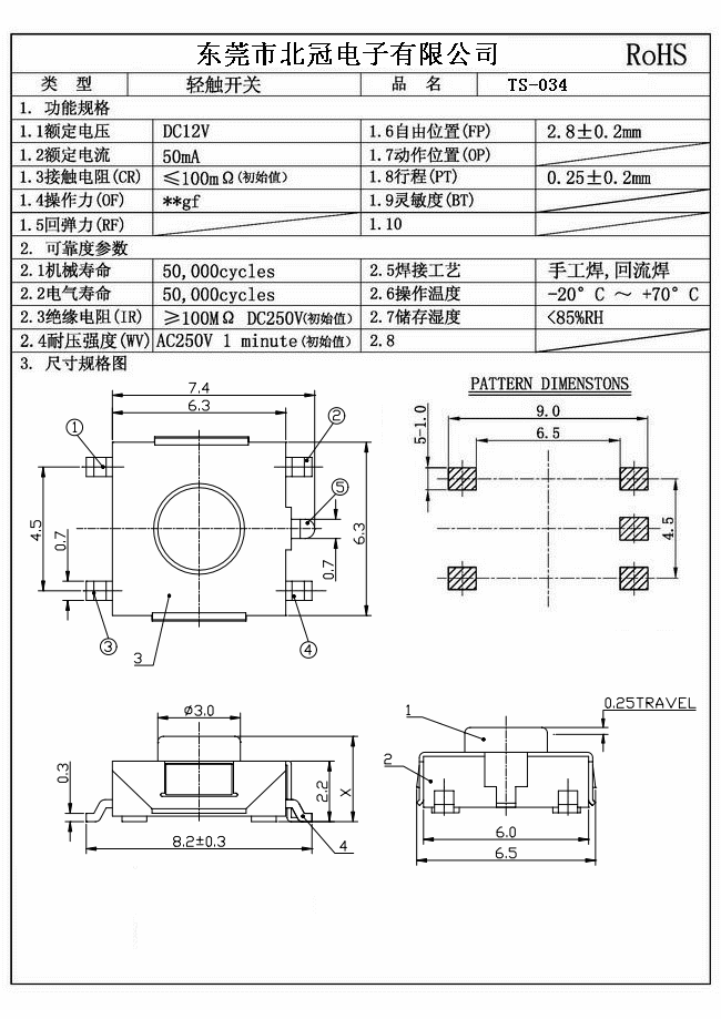 產(chǎn)品名稱:TS-034輕觸開(kāi)關(guān) Typical Specifications |