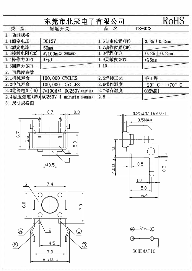 產(chǎn)品名稱:TS-038輕觸開關
