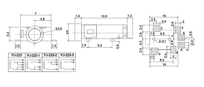 產(chǎn)品名稱:PJ-223 品名:2.5耳機(jī)插座 |