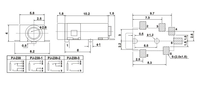 產(chǎn)品名稱:PJ-238 品名:2.5耳機插座 |