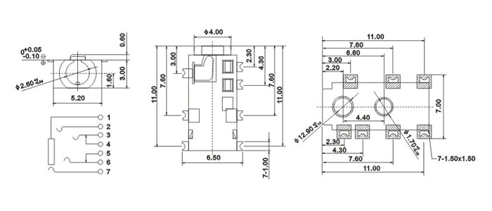 產(chǎn)品名稱:PJ-261 品名:2.5耳機插座 |