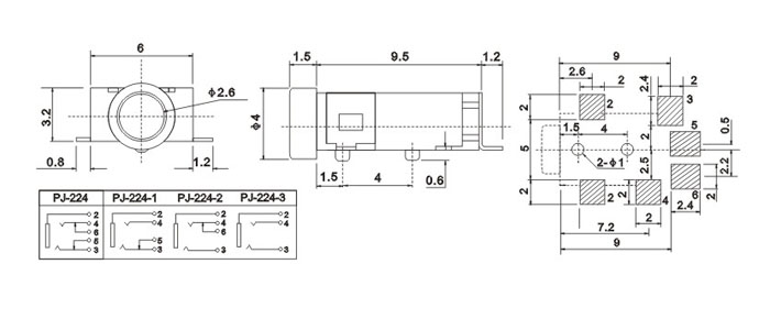 產(chǎn)品名稱:PJ-224 品名:2.5耳機(jī)插座 |