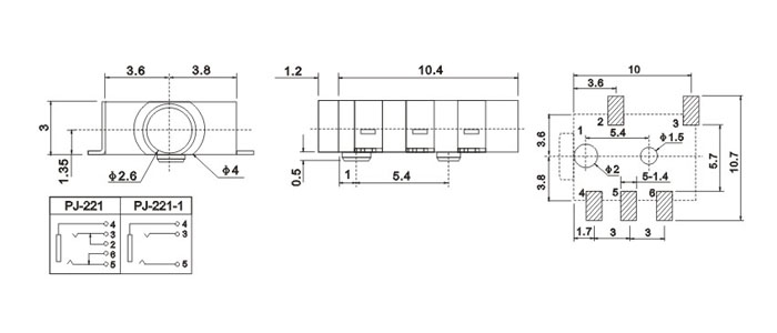 產(chǎn)品名稱:PJ-221 品名:2.5耳機插座 |