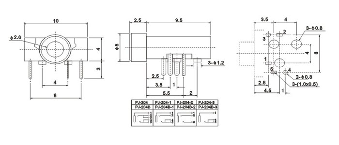 產(chǎn)品名稱:PJ-204 品名:2.5耳機插座 |