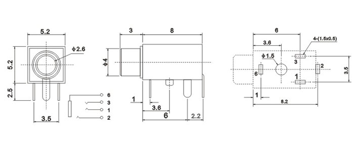 產(chǎn)品名稱:PJ-210D 品名:2.5耳機插座 |