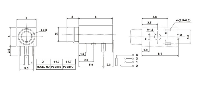 產(chǎn)品名稱:PJ-210C 品名:2.5耳機(jī)插座 |
