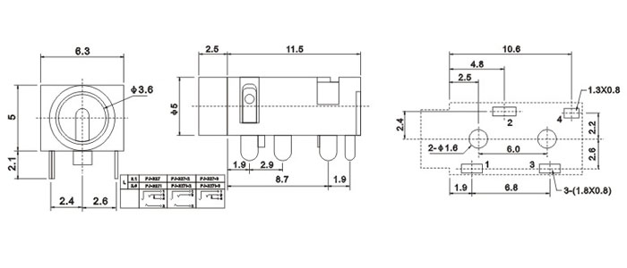 產(chǎn)品名稱:PJ-327 品名:3.5耳機(jī)插座 |
