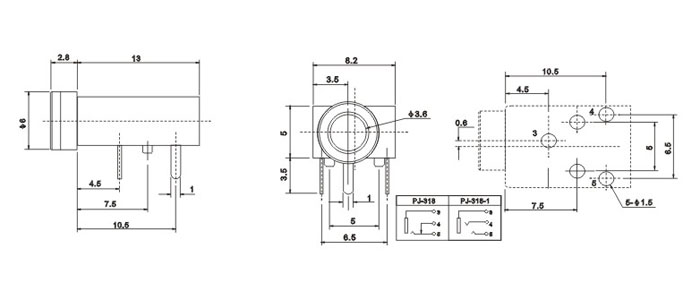 產(chǎn)品名稱:PJ-318 品名:3.5耳機(jī)插座 |