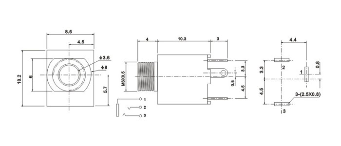 產(chǎn)品名稱:PJ-301CM 品名:3.5耳機(jī)插座 |