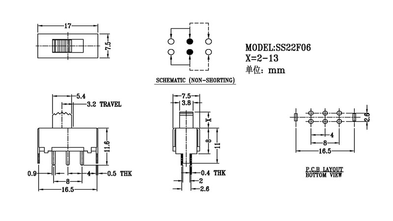 SS-22F06撥動開關(guān)